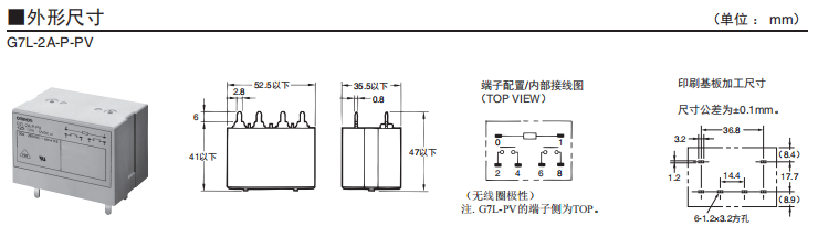 | 2極 | G7L-2A-P-PV | DC12、DC24 | 20個(gè)/托盤(pán) |